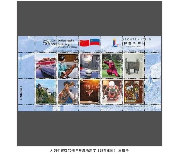 此次在列支国家博物馆展览两位艺术家的作品还有一个更重要的原因就是王祖诤和齐春林都是“邮票王国”列支敦士登的老朋友, 好朋友。王祖诤老师,他不仅为中列两国建交70周年的小版张题词“邮票王国”,还为中国十二生肖牛和虎的限量版写下“牛气冲天”和“虎虎生威”的潇洒题词。两位艺术家都在为中国和列支两国的文化交流默默地做着贡献,在这里列支邮政和列支国家博物馆献上由衷的感谢。